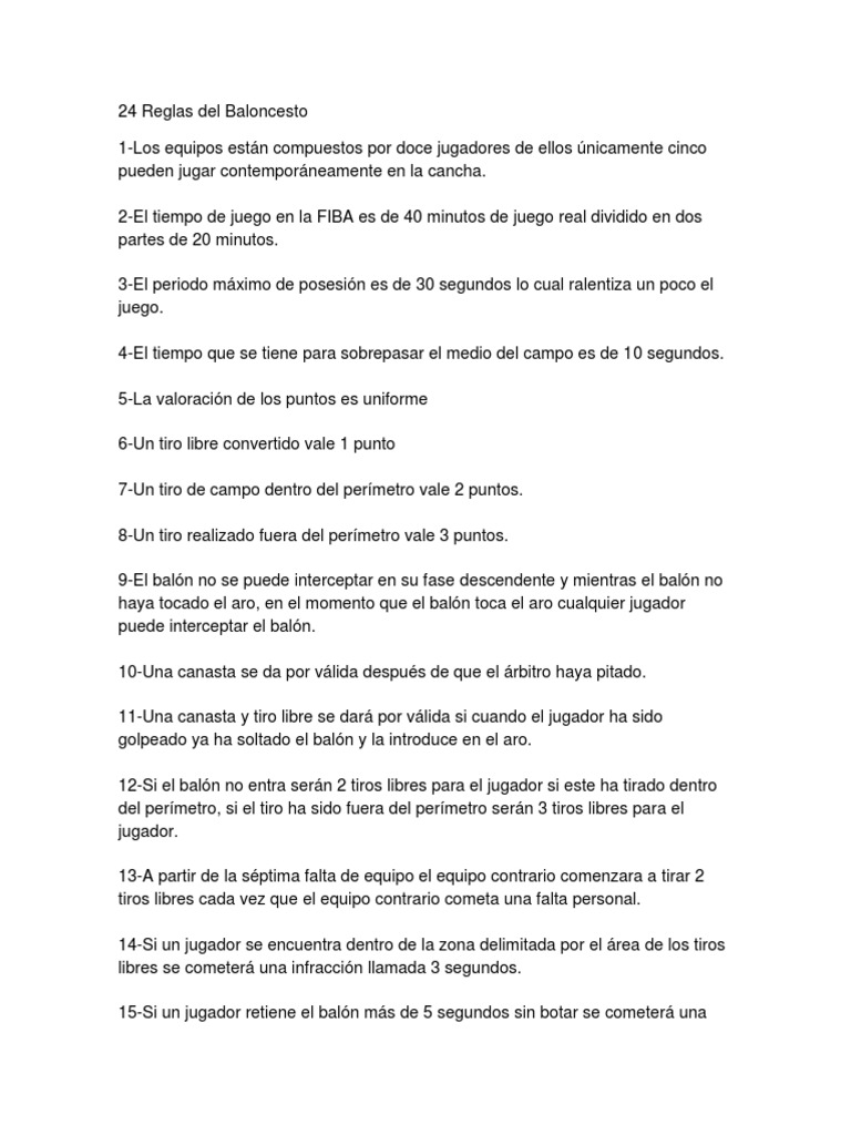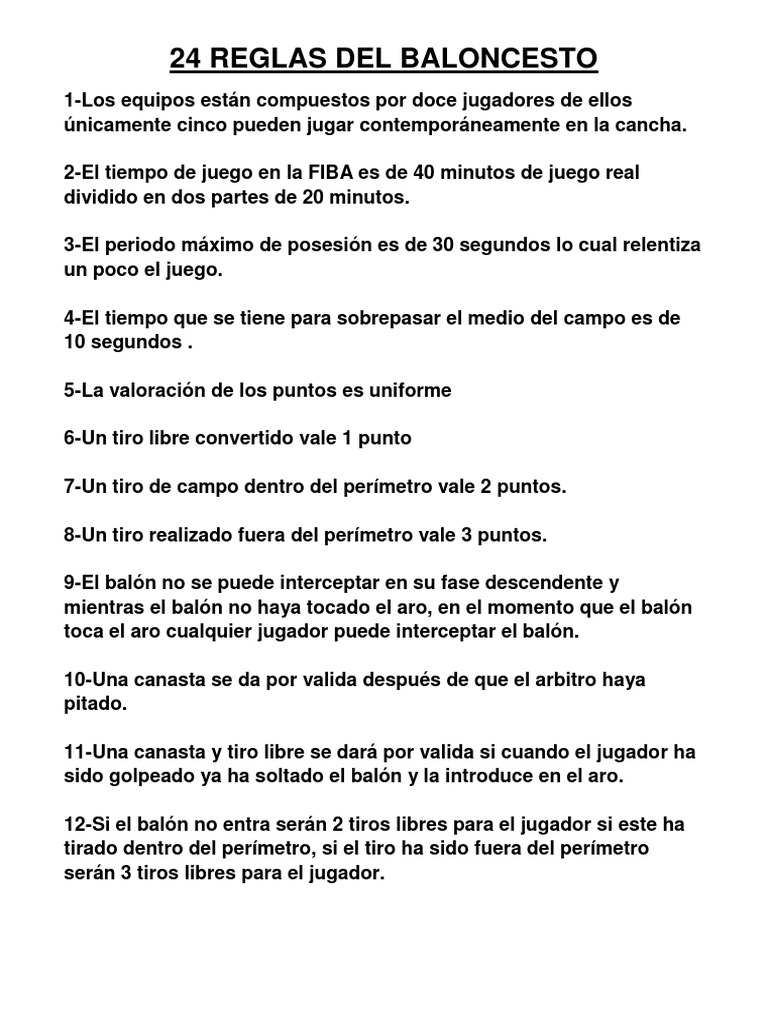24 Reglas Del Baloncesto Pdf Deportes Atleticos Juegos De Pelota