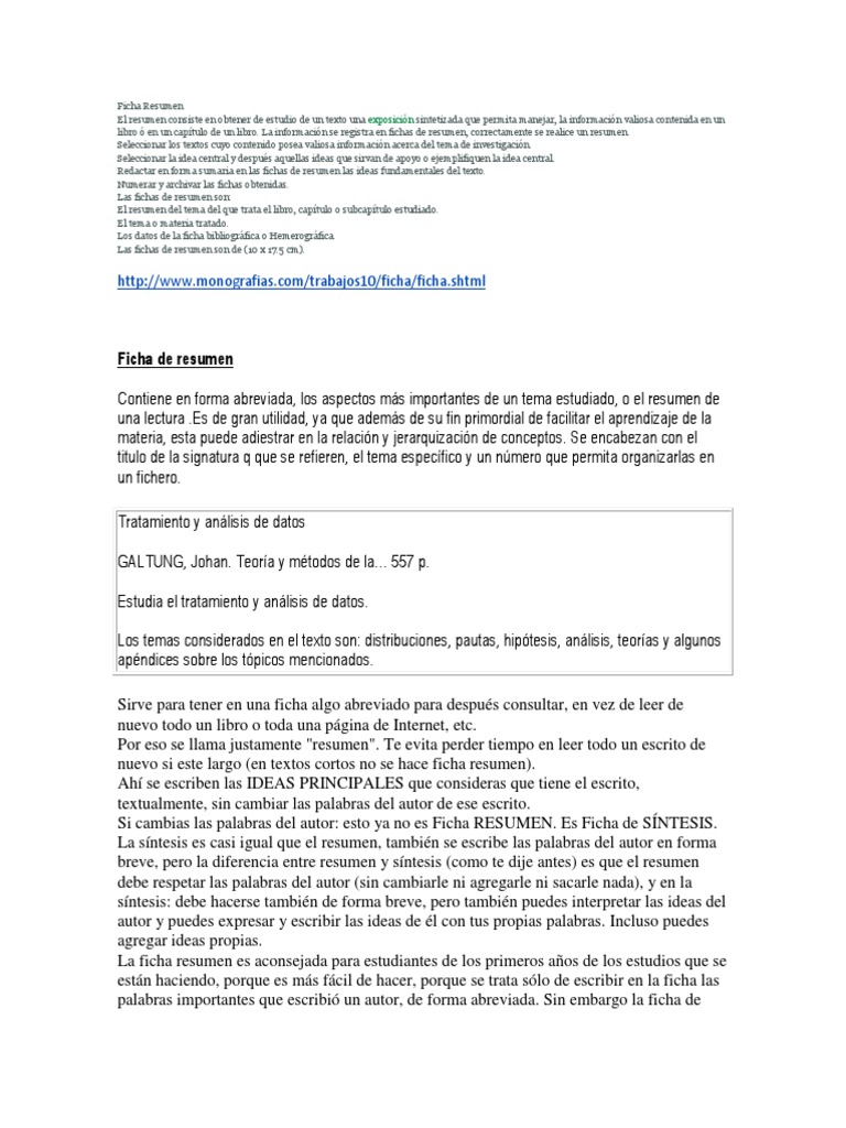 Como Se Elabora Una Ficha De Resumen