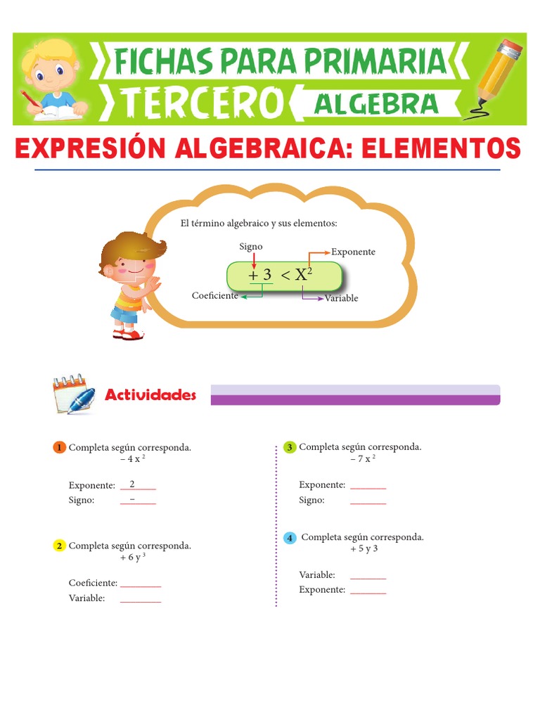 Elementos De Una Expresion Algebraica Para Tercero De Primaria Pdf Algebra Algebra Abstracta