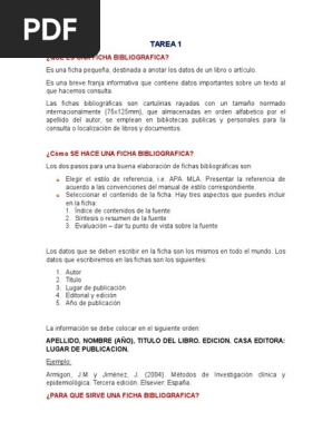 Que Es Una Ficha Bibliografica Pdf Bibliografia Publicacion