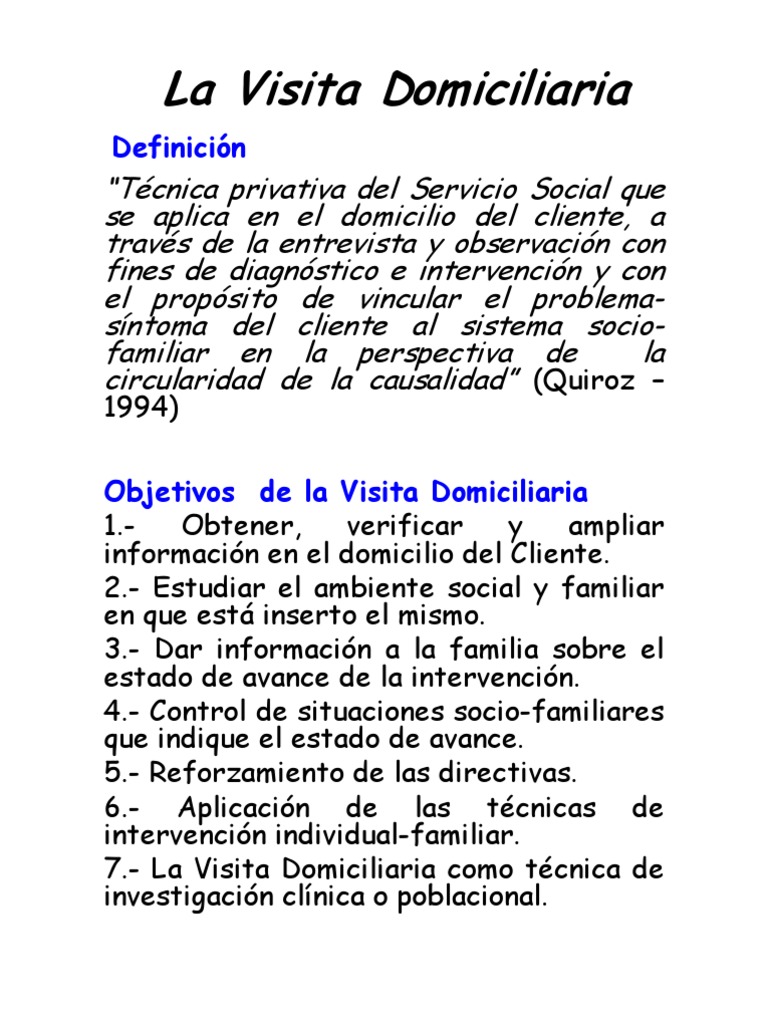La Visita Domiciliaria Trabajo Social Hipotesis