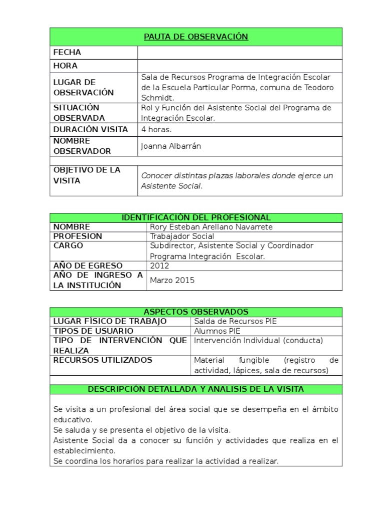 Pauta De Observacion Pdf Trabajo Social Conceptos Psicologicos