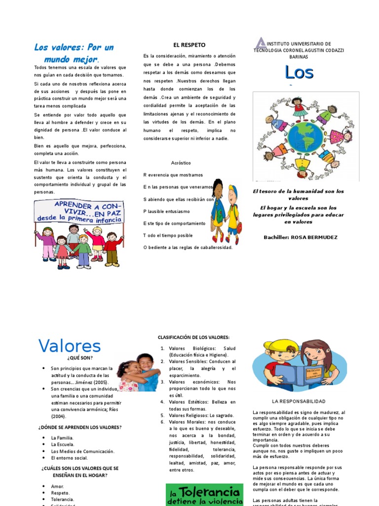 Guardar Guardar triptico los valores humanosdocx para más tarde. O Scribd é o maior site social de leitura e publicação do mundo. Entre los principales tipos tenemos.