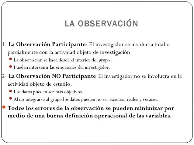 La observación participante como método de recolección de datos. La observación especialmente la observación.