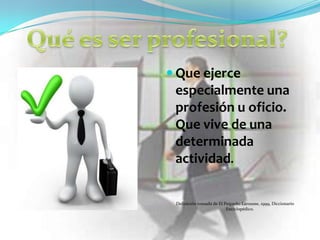 Una persona profesional es la que se desempeña en algo siendo consciente de que otros no tienen el mismo conocimiento suyo y manteniéndose humilde ante ellos.