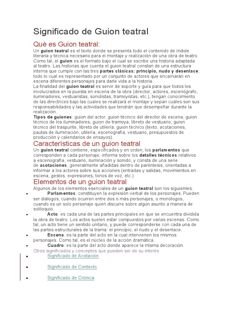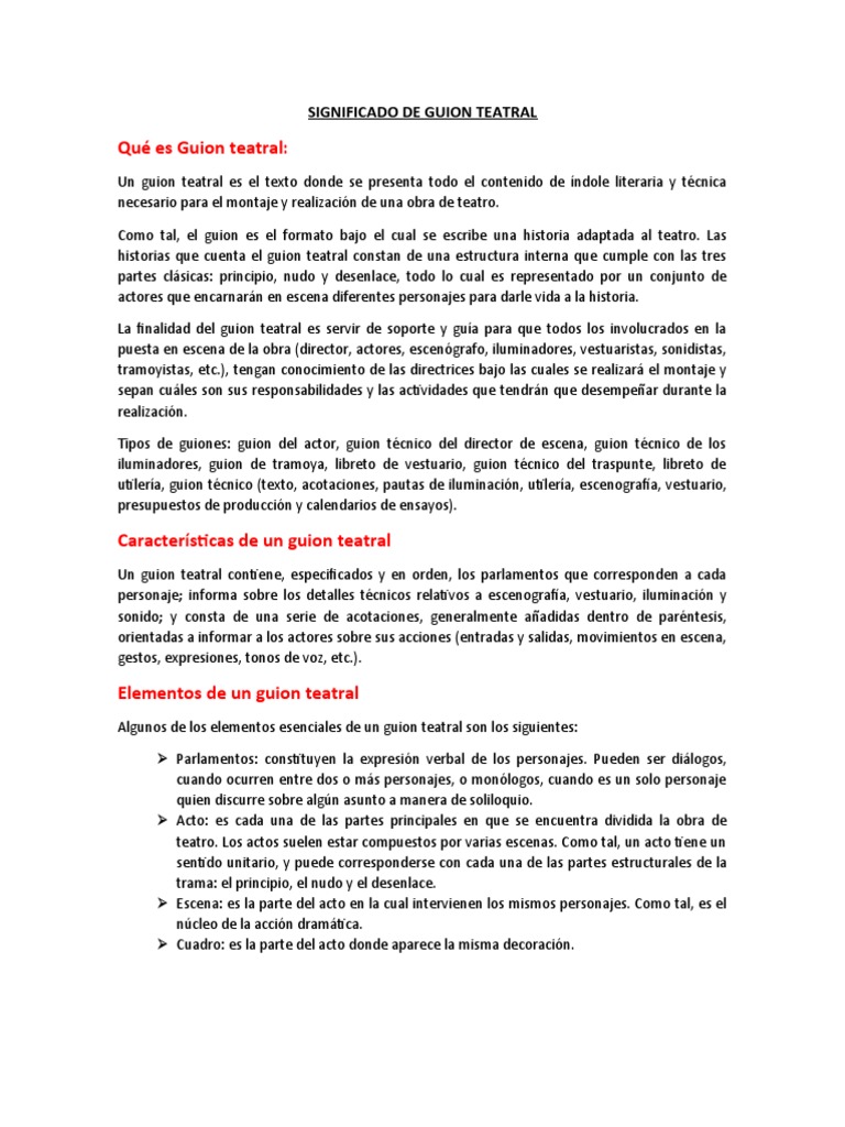 Significado De Guion Teatral Pdf Monologo Teatro