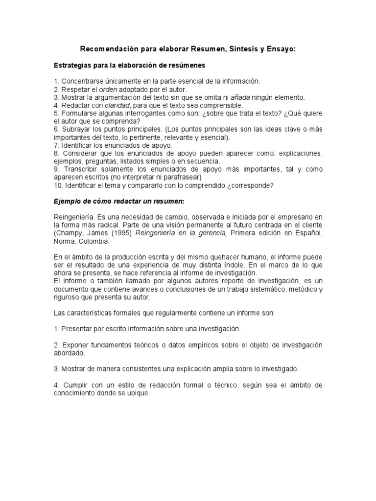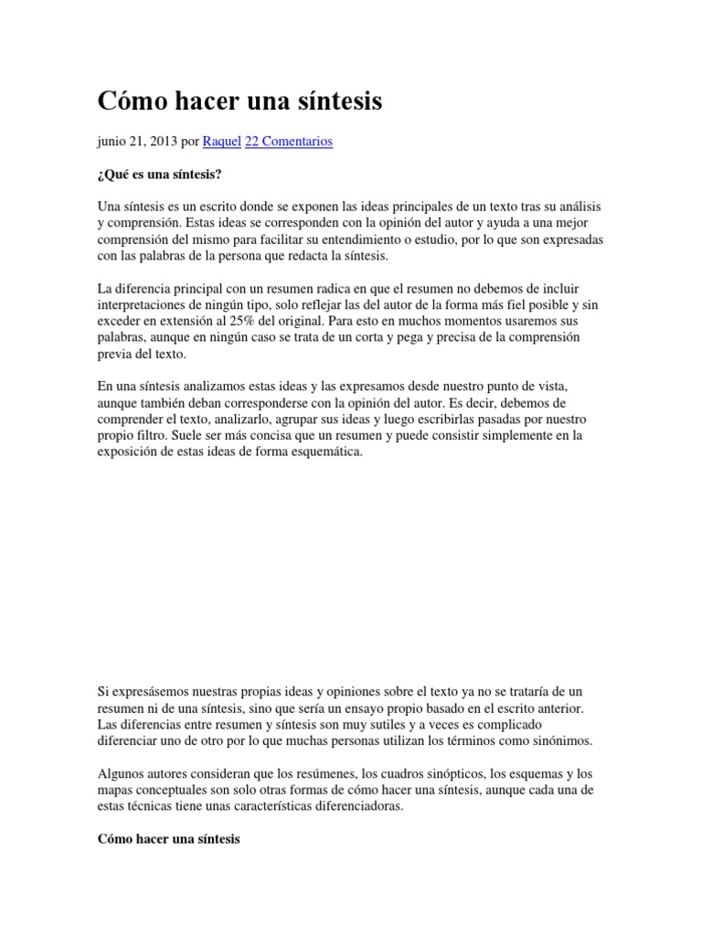 Como Hacer Una Sintesis Pdf Ensayos Autor