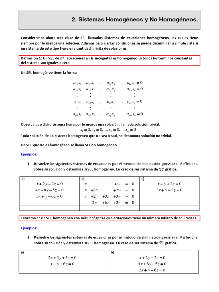 Sistemas Homogeneos De Ecuaciones Lineales Ejercicios Resueltos
