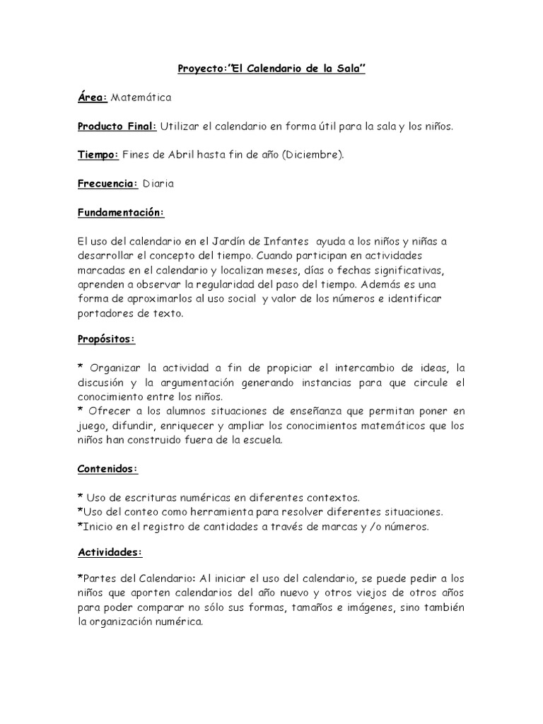 El Uso Del Calendario En El Jardin De Infantes Pdf Educacion De La Primera Infancia Calendario