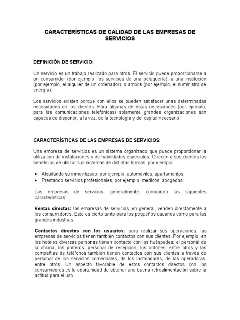 Caracteristicas De Calidad De Las Empresas De Servicios Pdf Cliente Calidad Comercial