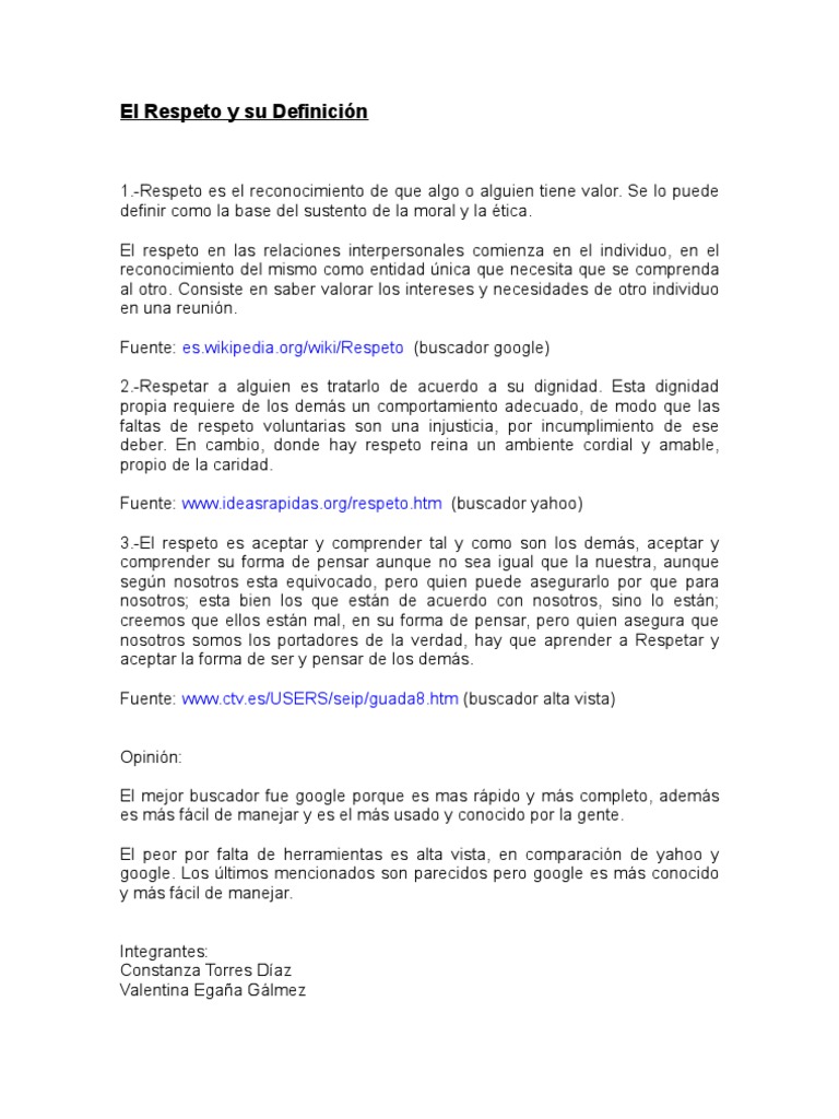 Definicion de respeto yahoo. AVISO LEGAL Este sitio web utiliza cookies tanto propias como de. Concepto definición corta y significado de respeto - Etimología y origen de la palabra respeto - Qué es respeto - RAE - Wikipedia. Es equivalente a tener veneración aprecio y reconocimiento por una persona o cosa.