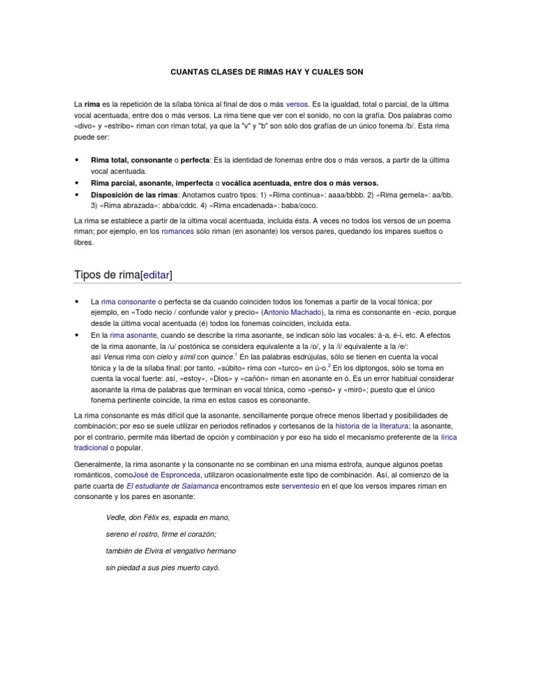 Cuantas Clases De Rimas Hay Y Cuales Son Pdf Rima Recursos Poeticos