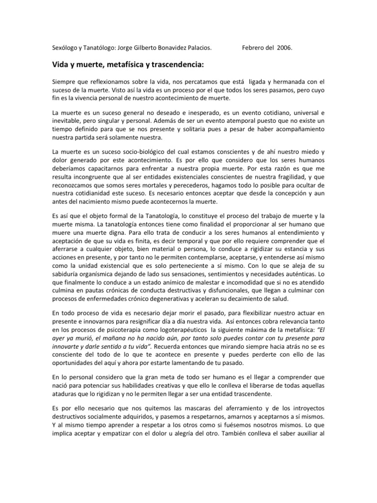 Vida Muerte Y Trascendencia Pdf Dolor Muerte