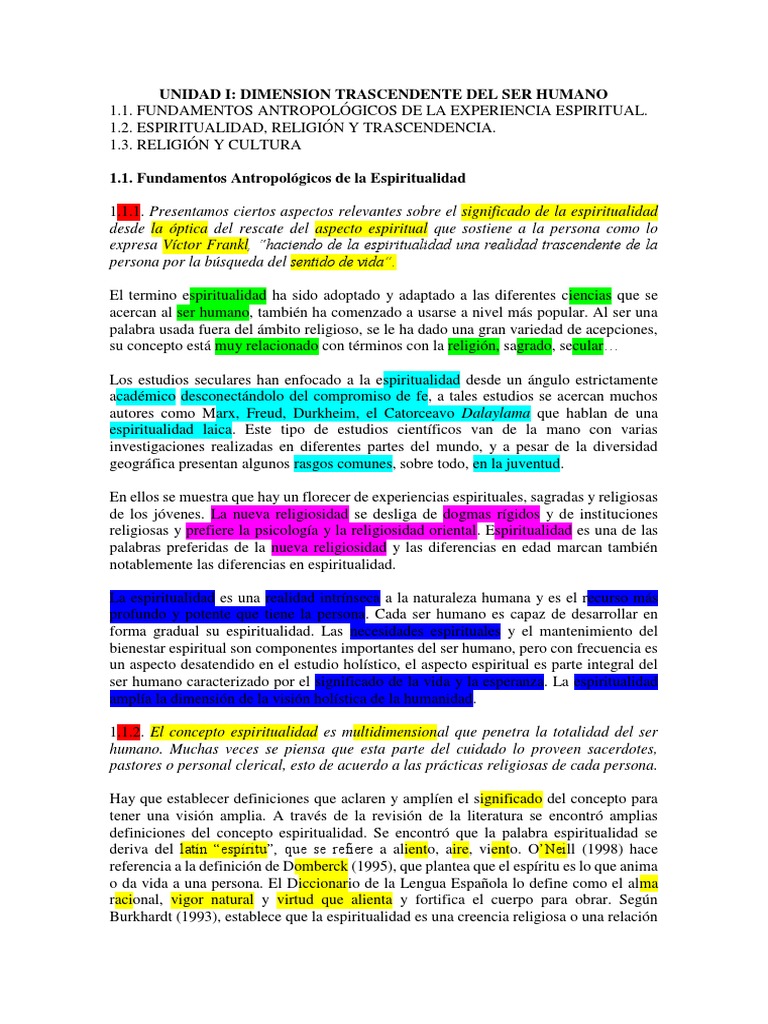 Dimension Trascendente Del Ser Humano Pdf Alma Existencia