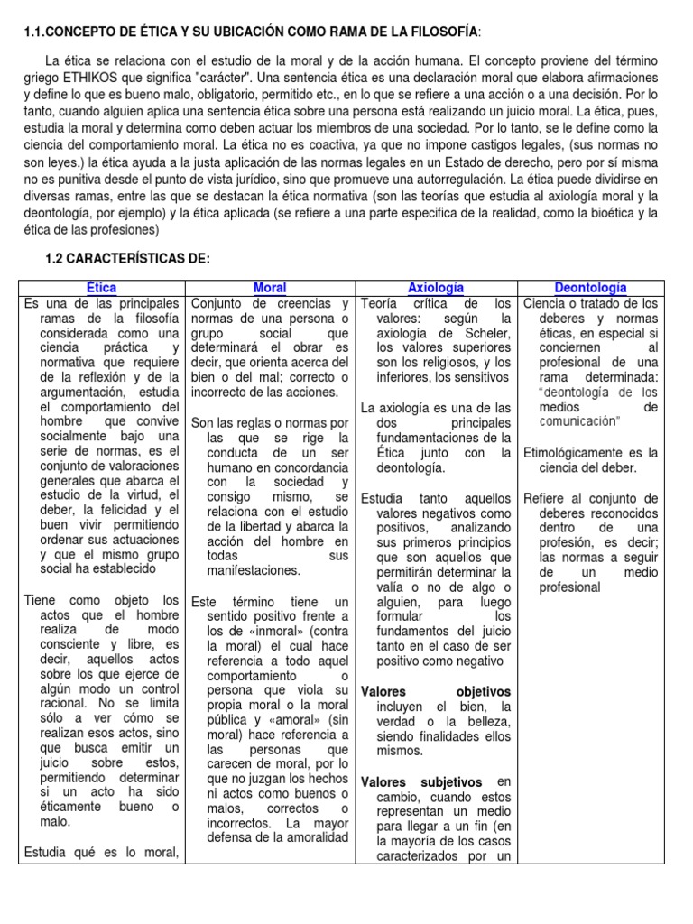 Concepto De Etica Y Su Ubicacion Como Rama De La Filosofia Pdf Moralidad Axiologia