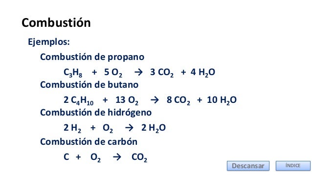 Una reacción química es el contacto entre dos o más sustancias químicas que reaccionan entre sí para formar sustancias diferentes. 5 ejemplos de reacciones de combustión son.
