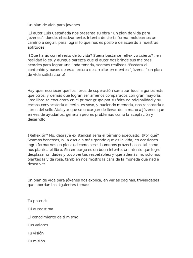 Un Plan De Vida Para Jovenes Pdf Amor Vida