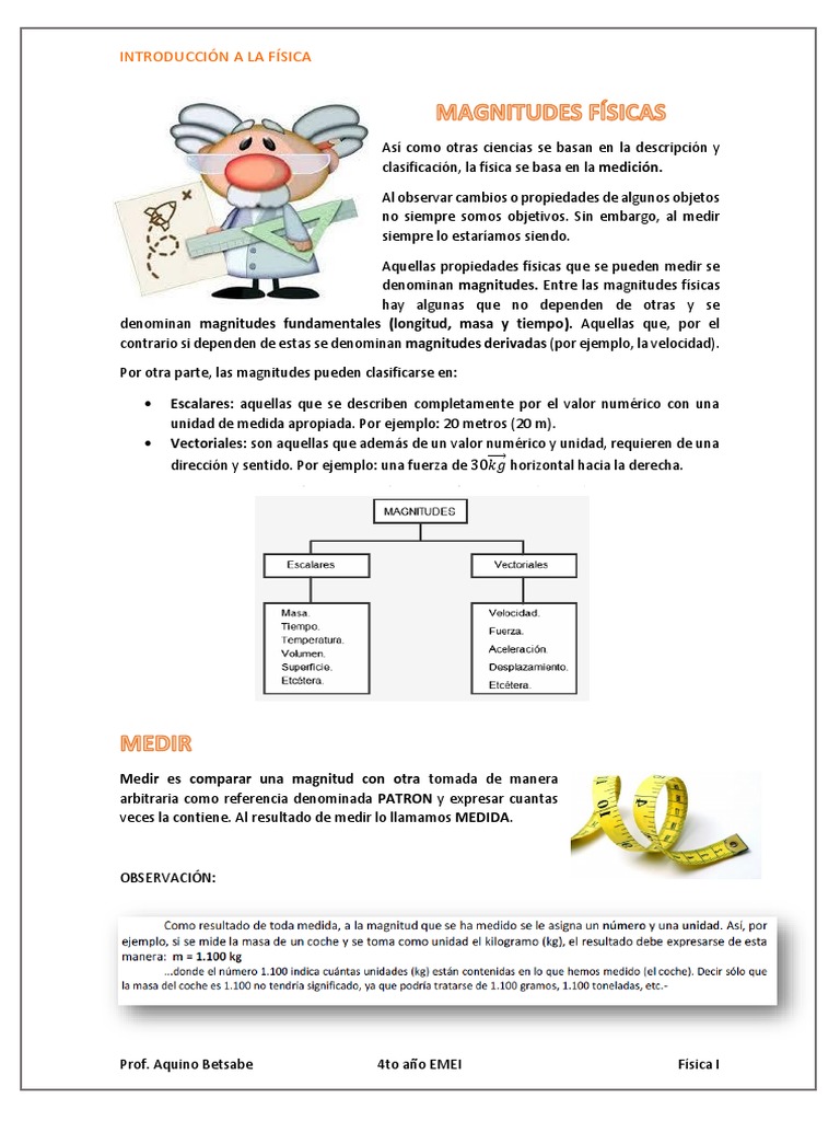 Clasificacion De Las Magnitudes Fisicas Para Tercer Grado De Secundaria