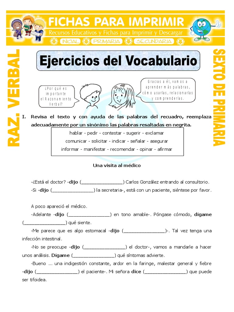 Ejercicios Del Vocabulario Para Sexto De Primaria Pdf Naturaleza
