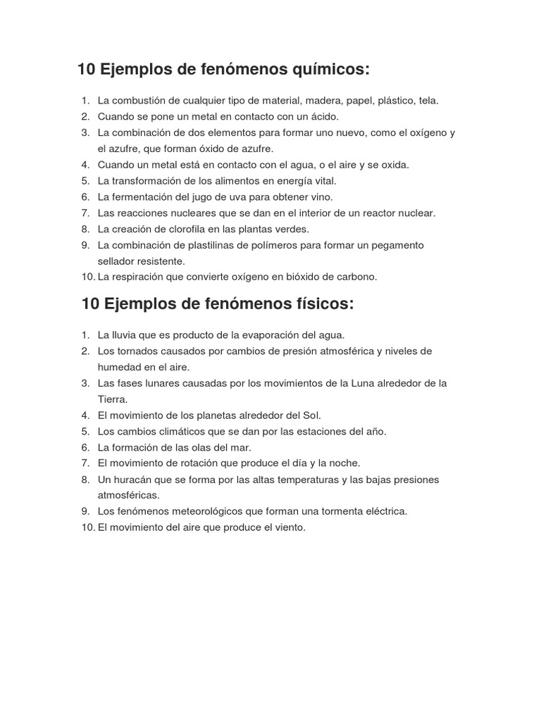 10 Ejemplos De Fenomenos Quimicos Pdf