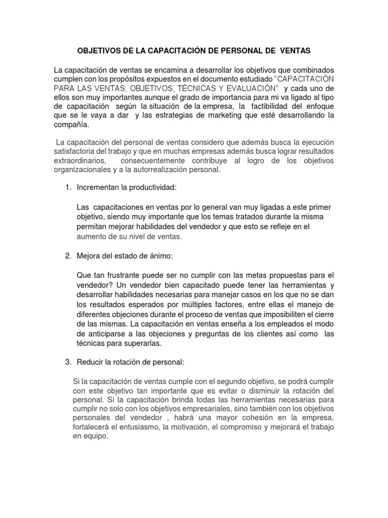 Capacitacion Para Las Ventas Objetivos Tecnicas Y Evaluaci By
