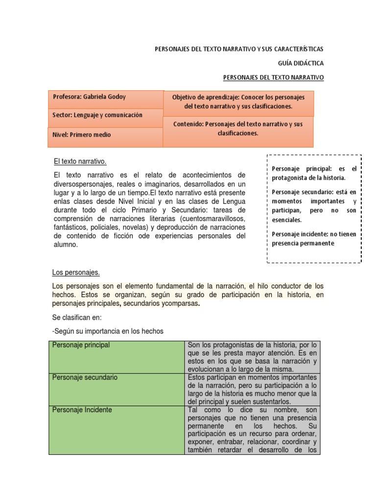 Personajes Del Texto Narrativo Y Sus Caracteristicas Pdf Comportamiento Science