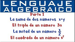 Lenguaje Algebraico Parte 1 Youtube